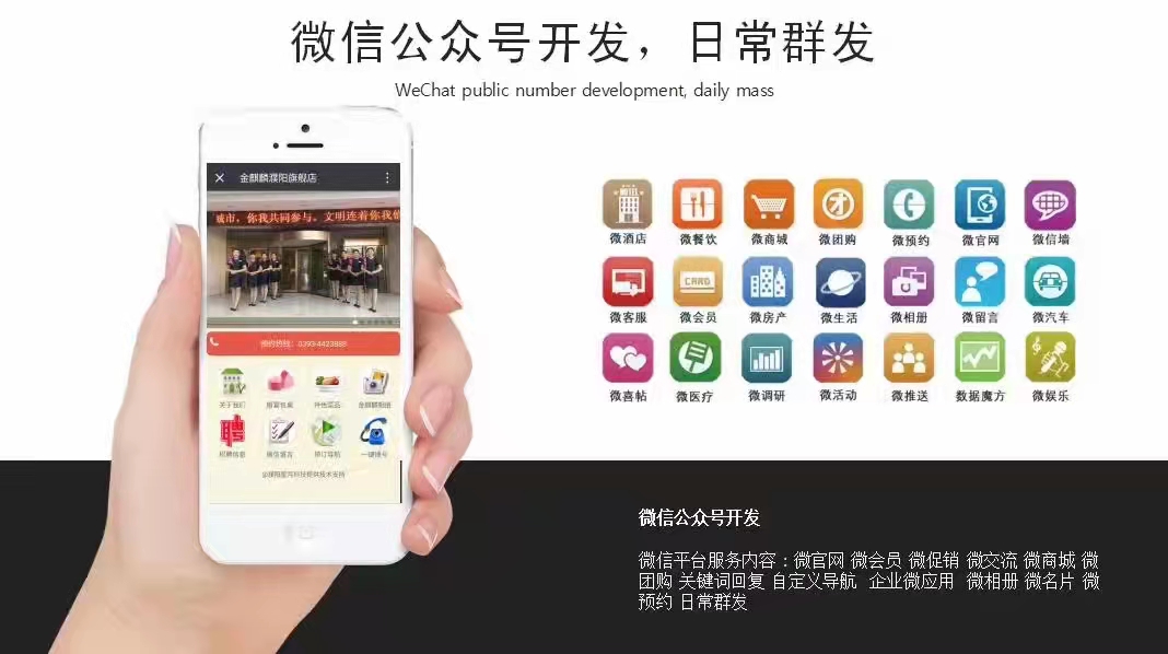 第一、我公司幫助企業(yè)注冊微信公眾號(hào),根據(jù)客戶的需求,快速定制微信公眾平臺(tái)。